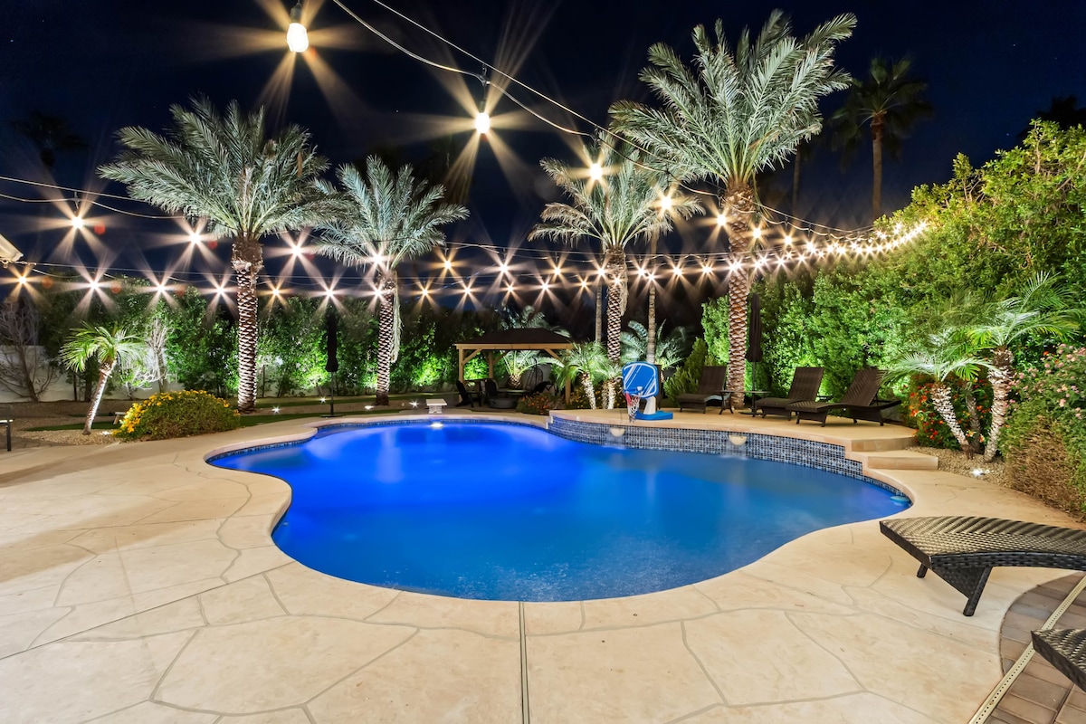 Welcome to The Hidden Hacienda Scottsdale! A fun, whimsical retreat with cowboy-chic decor, pool, spa, karaoke, and games—perfect for bachelorettes, families, or golf getaways. Sleeps 10 with comfy beds, smart TVs, a pool table and a fully stocked kitchen. Lounge beneath swaying palm trees, practice your swing on the mini putting green, or unwind in your private backyard oasis with cozy seating fire-pit and outdoor tv. Minutes to Kierland Commons, top golf courses, Spring Training and more!