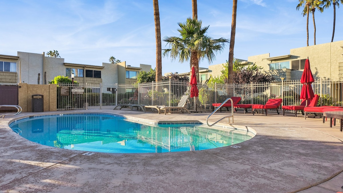 Beautiful walk-out to pool!! Come enjoy our newly renovated Scottsdale condo. Featuring 2 bedrooms, 2 bathrooms and a community pool. The perfect escape for those wanting to soak up the sun, enjoy Spring Training games, and spend some time in the great outdoors. A bright and airy interior and modern kitchen make this the perfect getaway. Walking distance to Fashion Square Mall, Old Town, Camelback Mountain, Scottsdale Stadium, and more!! TPT License: 21277721. STR License 2024828.