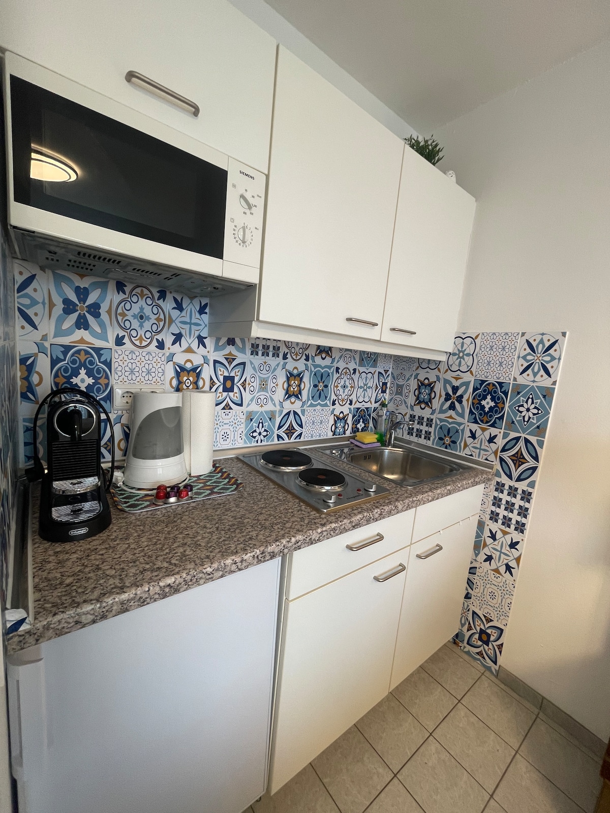 One Room Apartment,whit balcony kitchenette ,bathroom,Toilette situated in 3***Hotel Building Suitable for 2 persons downtown 5 minutes Walk fron Munich central train station The studio has around 21 m2, on 6 Flor whit a balcony Square Feet = 226.04 internet,microwave ,TV,refrigerator,hotplates,toaster,hairdryer,iron,ventilator Queensize-Bett size 160cm /200cm bedlinen towels ,soap,shampoo are provided