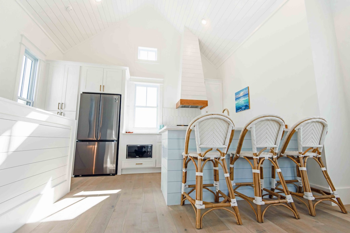 Small in stature but grand in design, this 30A beach house will wow you. Access to neighborhood pool, gym, & the beautiful white sand beaches a few blocks away. Small Waves is set in the Blue Mountain Beach area, which is well-known for its charm, its restaurants, & its famous ice cream shop. We have an EV car charger for electric cars (no extra fee) plus access to an electric golf cart (extra fee). Bedroom has a king size bed & twin bed & there are also 2 twin beds upstairs.