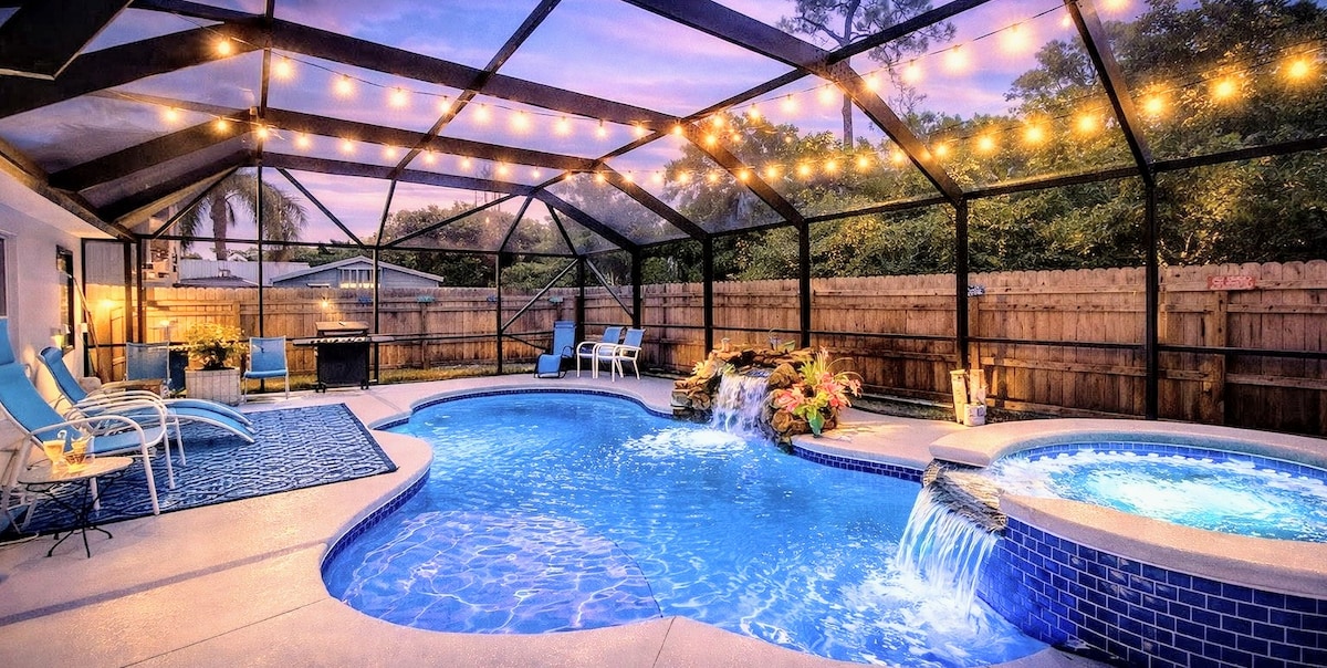 Welcome to Melbourne Tropical Oasis, a thoughtfully designed vacation home equipped with all essentials and more! This is the perfect tropical getaway for the whole family, pups included! Just 15 minutes from Melbourne Beach, this location offers an amazing pool, game room, backyard for grilling, a relaxing hot tub & a comfortable sofa for movie nights, making it so inviting that you might not want to leave. Get a game going on our Pickleball Court! Book NOW!