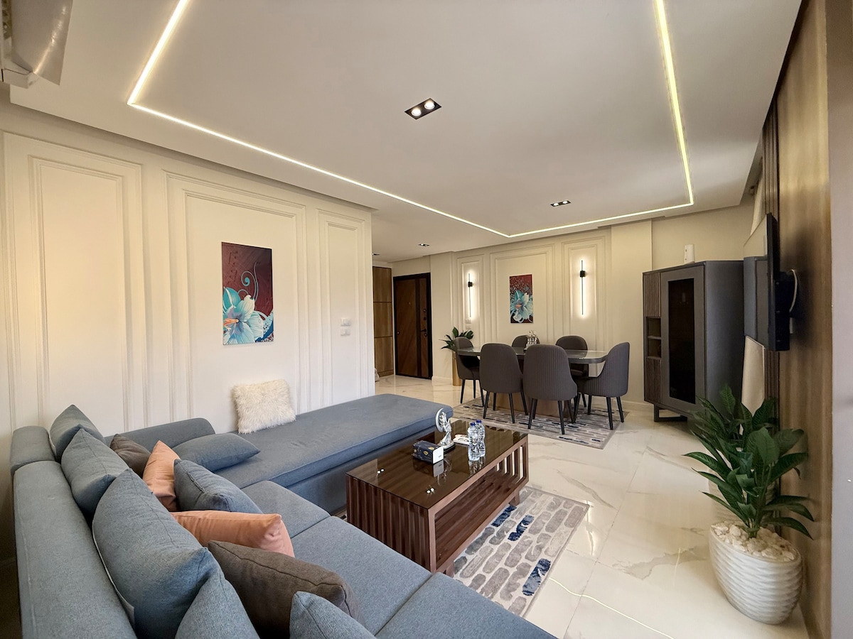A rare 140 m², 2-BR apartment in Rehab offering premium comfort and outstanding value in the heart of New Cairo. Enjoy outstanding consistent cleanliness, elegant design, and full air conditioning true home. It features high-comfort beds in the master suite with a bathroom and dressing area, as well as a twin-bedroom. Both bathrooms are equipped with rainfall showers. You’ll also find a fully equipped high standard kitchen, and a peaceful terrace — all designed to help you relax and chill.
