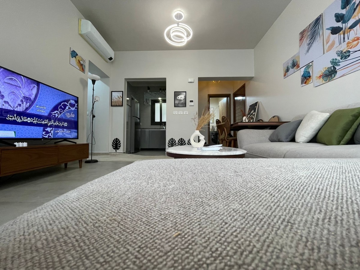 A fully furnished separate apartment in a private villa, located less than 20 min. from Egypt's International Exhibition Center, 15 min. from Cairo airport, 5 minutes from Al Rehab City, Easy access to transportation and hypermarkets. It is designed to accommodate a maximum of 2 guests in one air-conditioned bedroom with a private bathroom and access to the private kitchen and living room. Note: Unmarried Egyptian couples are not allowed. We provide full assistance to our guests as needed.