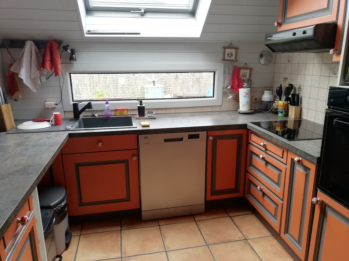 Superb spacious and bright 80 m2 new chalet, built and decorated by our own hands, located at the edge of the woods on the grounds of our main home but completely independent. You will enjoy 2 outdoor terraces, including one perched in the woods for a cocooning moment with its private spa. This accommodation has an unusual and comfortable style, in a unique setting conducive to relaxation. Possibility of arriving at 5pm on the weekend.