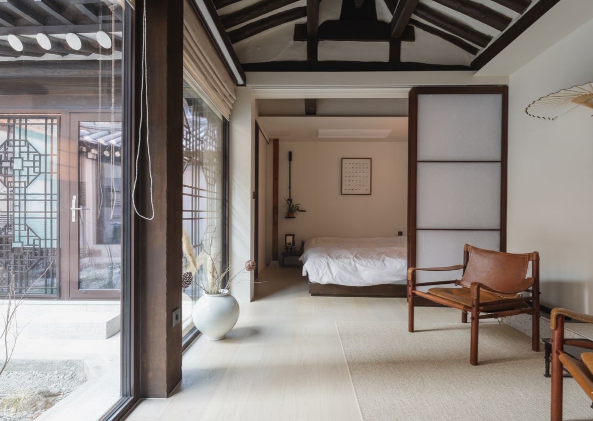 Gotaek (๊ณ ํ) means an old hanok, typically over 100 years old, The Classic-Goteak Seochon chosen by world-renowned artist Nicolas Party for a 6-week, and Filming locationn for famous Korean movie [Architecture 101]. A private luxury Hanok hotel with an outdoor jacuzzi, exclusively for one group, in the heart of Seoul. A stunning architectural gem preserving the charm of traditional Hanok while blending modern sophistication. Its rare loft-style design features state-of-the-art amenities