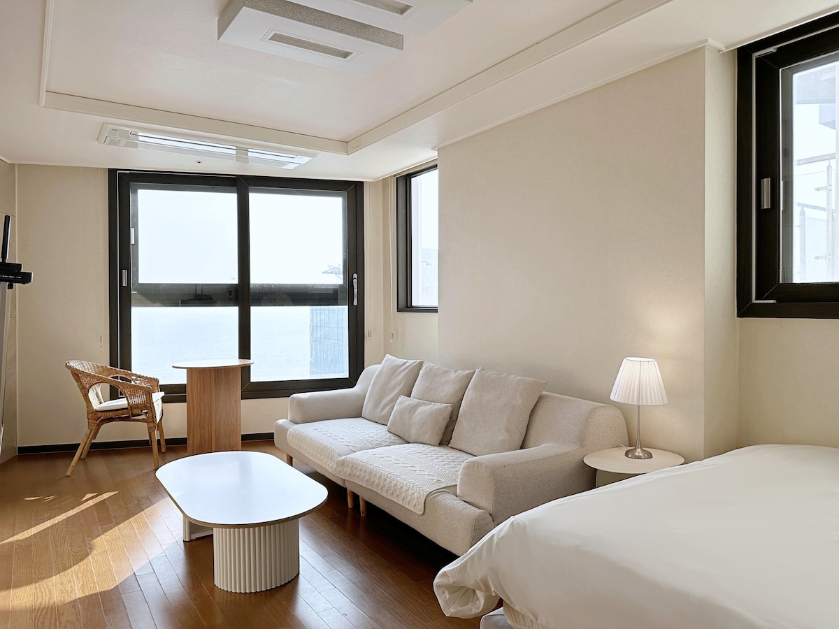 ❤Haeundae * Ocean View * Netflix ☆Remodeling☆❤ ♠︎ 1 minute from the white sand beach and Gunam-ro ♠︎ ♡♡Hotel room