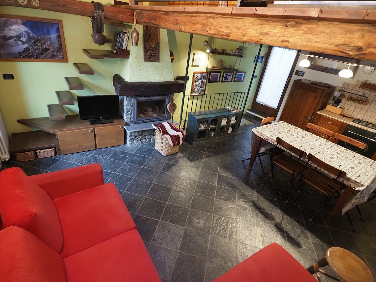 Single house accessible by car in a renovated mountain village. The accommodation is located on the return slope of the Torgnon ski area. Bedroom with a bunk bed plus two other pull-out beds and a loft with a double bed. Very cozy living room with open kitchen, sofa and fireplace. Large closets, a full bathroom with bathtub/shower and a bathroom with sink and toilet. Ski storage cellar Small pets allowed