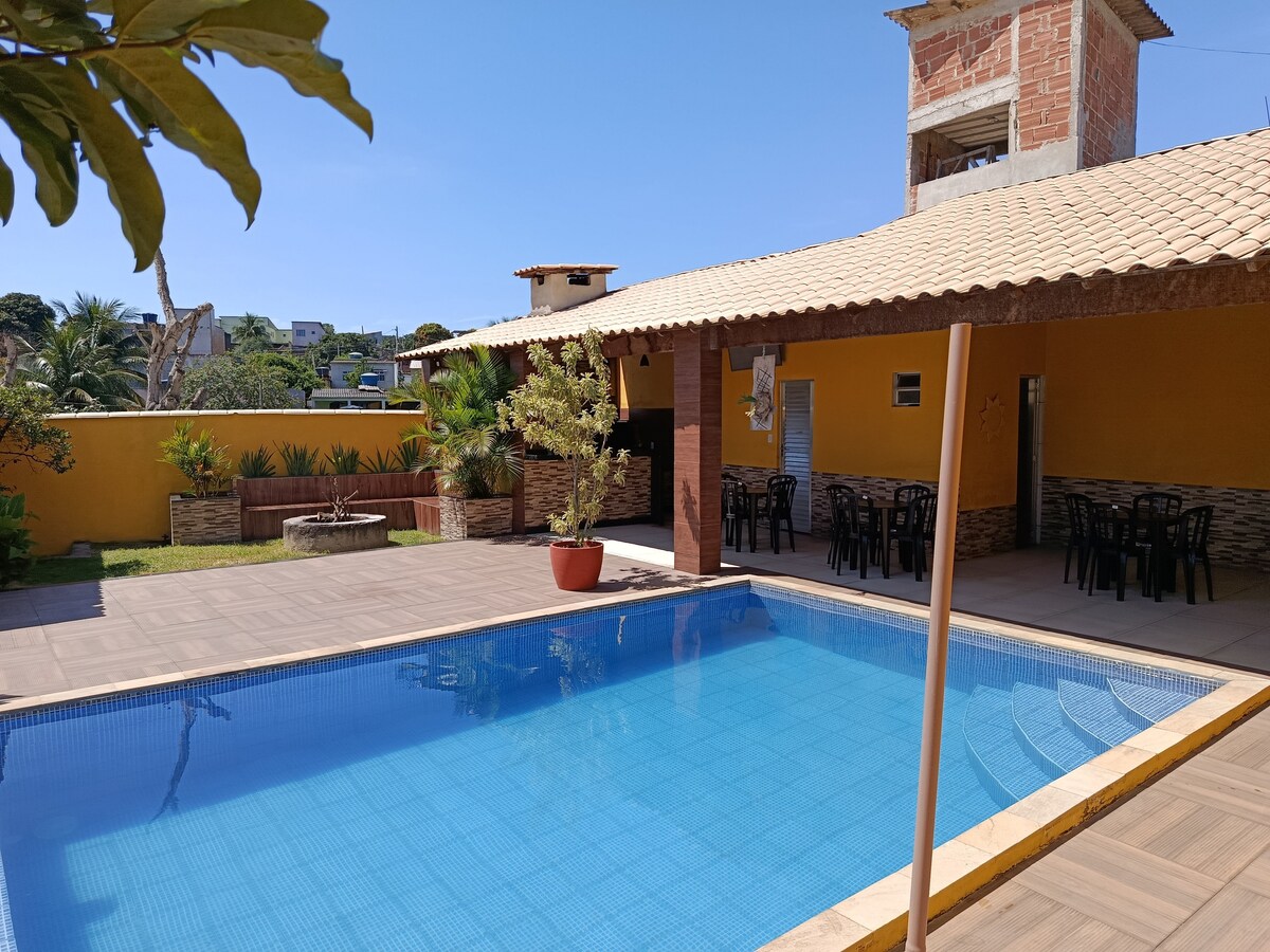 Você vai amar nosso espaço por conta da proximidade do Rio de Janeiro, fácil acesso e tranquilidade da natureza. Casa com 3 quartos ( 2 suítes), mais um banheiro interno e um externo. Churrasqueira, piscina, salão de jogos, sinuca, ping-pong, totó, campo de futebol , vôlei, bocha e varandão. Casa toda mobiliada com cozinha equipada. Segurança total por ser em rua sem saída. A 1 hora do Rio de Janeiro.