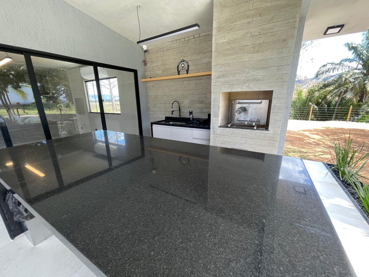 Fully structured ranch in the midst of nature. The area includes a living room with a kitchen equipped with a refrigerator, freezer, stove and barbecue grill. We have a lake with fish, volleyball and soccer court, ping pong and pool. The swimming pool with a wet bar is a differential. The house is spacious, has new facilities, a large balcony with a hammock, bathroom, barbecue grill and wood-burning stove. House with 3 bedrooms, one of which is a suite with air-conditioning. Integrated and spacious living room and kitchen, with all the necessary utensils.
