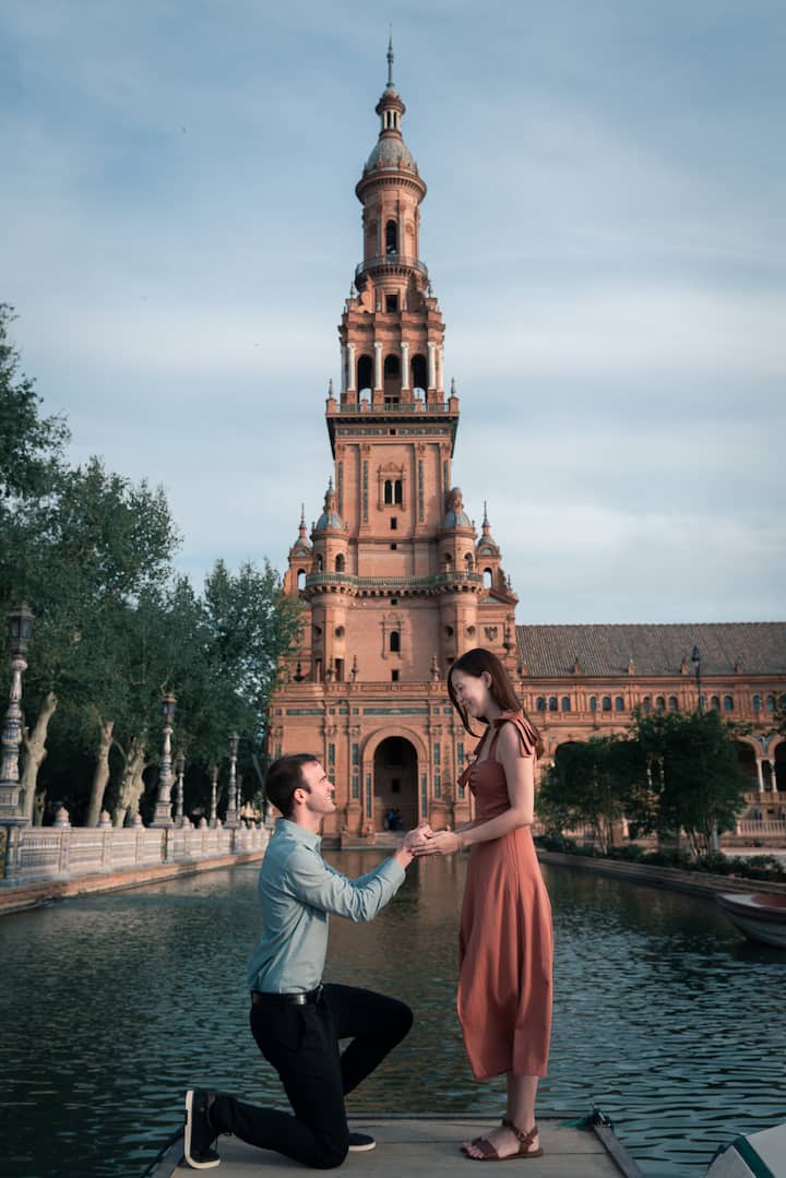 Surprise your partner with a marriage proposal in Plaza de España. Explore its nooks and crannies, capturing every moment until the big moment, keeping the surprise in unforgettable memories.