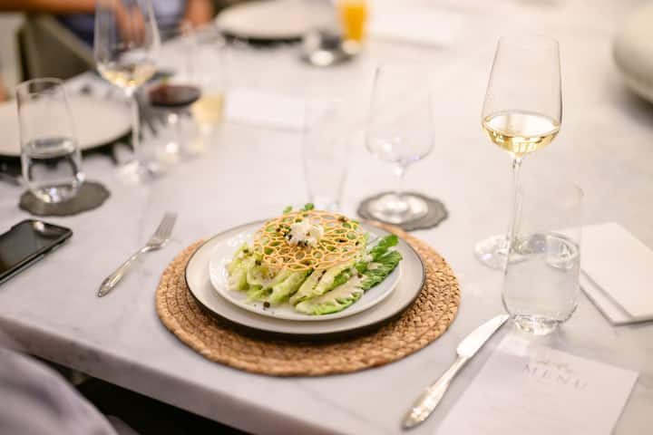 A refined 4-course lunch designed for a lighter yet luxurious experience. Beginning with a fresh appetizer, followed by a heartier seasonal starter, a carefully crafted main course, and a modern dessert. Inspired by seasonal West Coast flavors and classic European techniques. Includes full luxury setup with tableware, personalized menus, and professional servers to guide the experience. Beverages not included