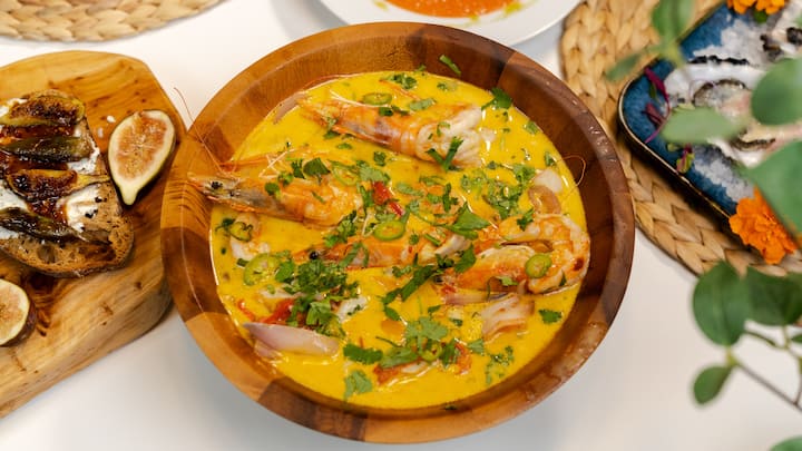 Indulge in a 4-course menu highlighting the bold, diverse culinary traditions of South America—with California flair. Sample starter dishes include chile-relleno bites and palta reina (savory chicken salad sliced on avocado halves). First-course options may include ceviche and anticuchos (skewered, grilled beef or chicken). For mains, expect dishes such as chicken or beef milanesa, and salsa verde chicken. Dulce de leche and brigadeiro are sample dessert options.