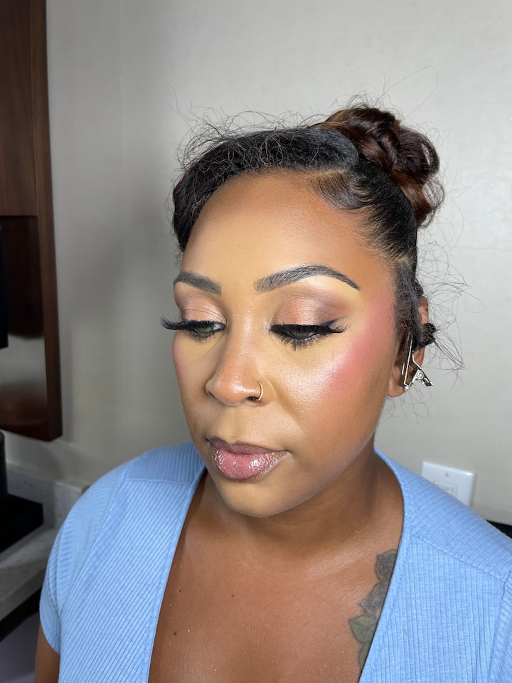 A quick polished beauty look that enhances your natural features with a soft radiances and effortless elegance. this time-efficient service focuses on fresh, glowing skin, light definition on the eyes, natural brows, and a soft lip- perfect for everyday wear or any moment you want to look put-together without a full glam. Simple, Classy, and beautifully elevated.
