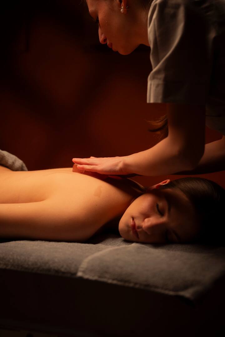 This treatment involves the application of heated stones to specific points of the body. The combination of warmth and gentle movements promotes the release of muscle tension, stimulates circulation and gives a feeling of lightness, mobility and deep well-being.