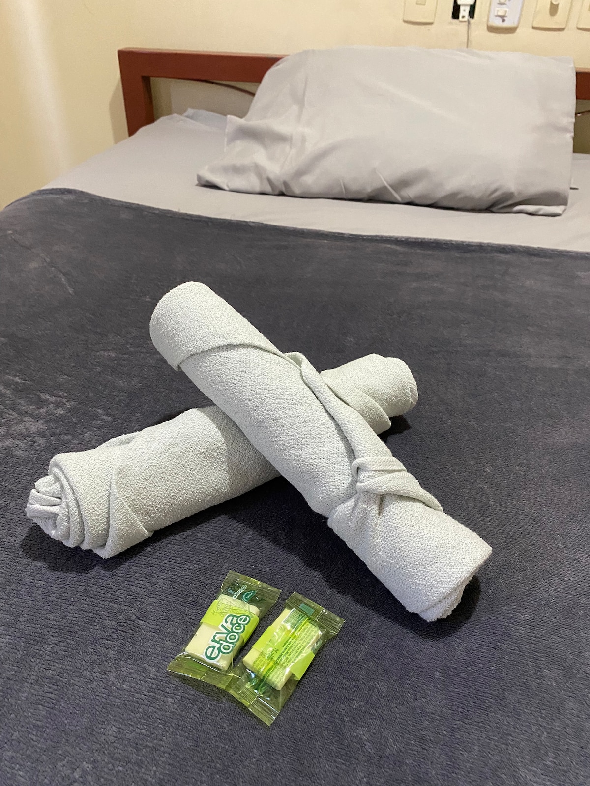 A acomodação é um quarto simples, ideal para quem busca praticidade e economia. Estamos localizados no centro da cidade, próximos a comércio, restaurantes, serviços e transporte. Importante: os quartos são de acordo com a disponibilidade. Para consultar opções com janela, solicite antes da reserva. O que oferecemos no quarto: • cama de casal • TV • ventilador • armário • roupa de cama • toalha