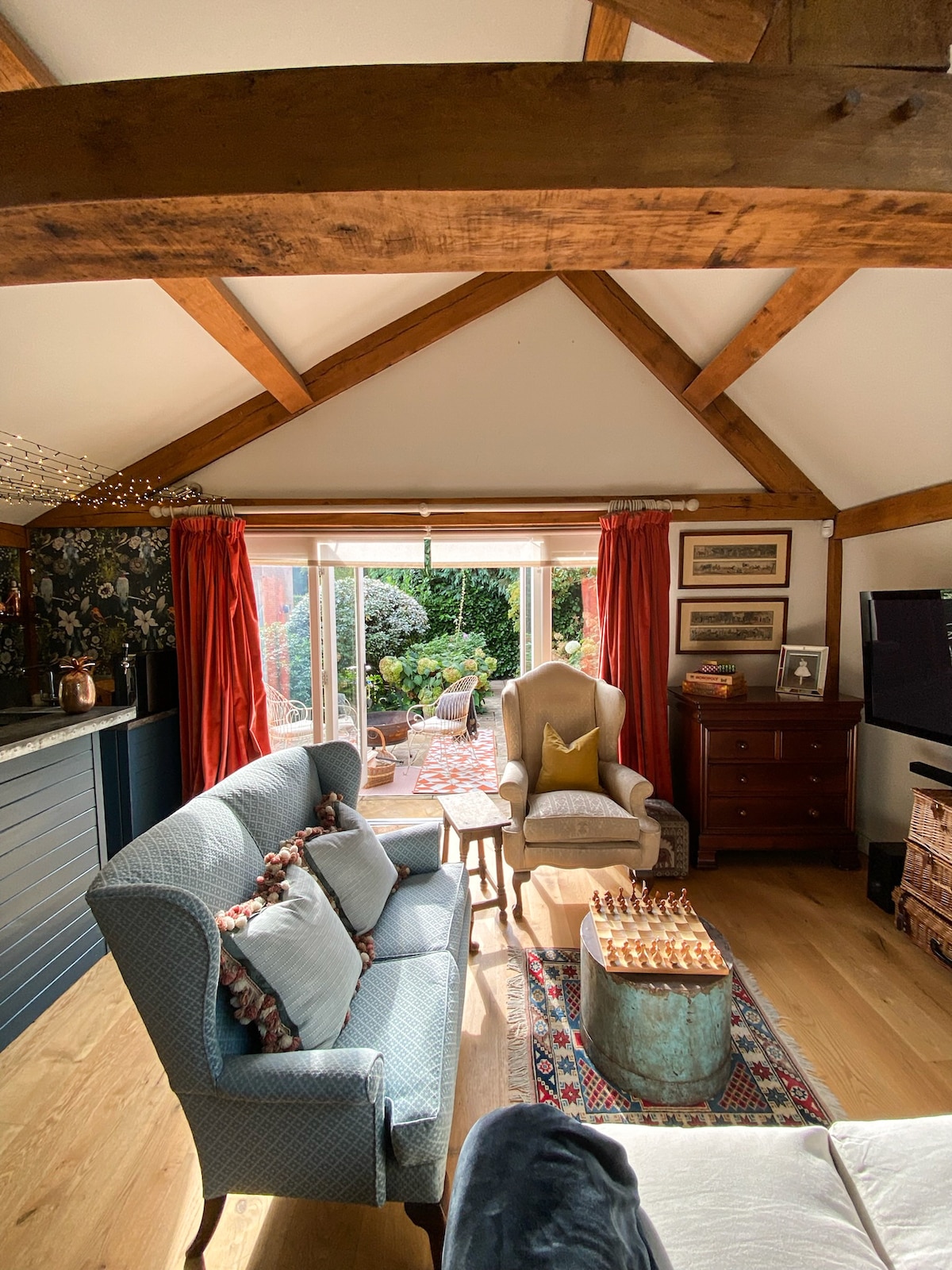 Little Willow is set in our walled garden and is a self contained annex to our home. It was completed in October 2020. It has a bedroom/sitting room with a king size bed, sofa, table and two chairs and a smart tv. There is also a kitchenette with kettle, toaster, Nespresso coffee maker, microwave, hob and fridge. The modern bathroom has a large walk in shower and heated towel rail. Travel cot and occasional bed available on request at an additional charge.