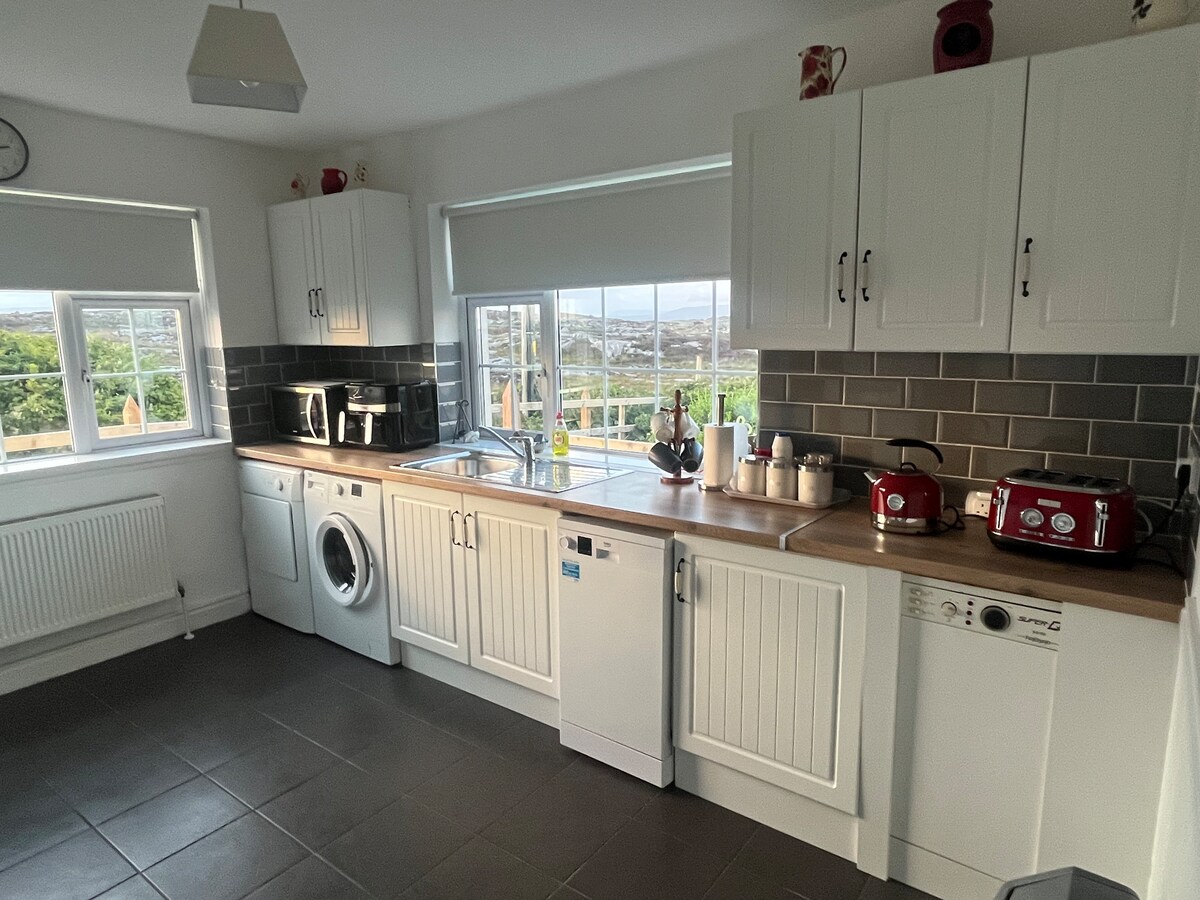 Possibly one of the most beautiful views and locations overlooking Dogs bay beach and sitting at the foot of Errisbeg hill, 6 minute drive from the picturesque fishing village of Roundstone. Surrounded by some of the most beautiful scenery on the west coast of Ireland. Looking out across the Atlantic Ocean at the Aran islands, gurteen beach and dogs bay beach. Hill climbing to the rear and beach walks to the front of the cottage, there are possibly few locations to compare with this cottage