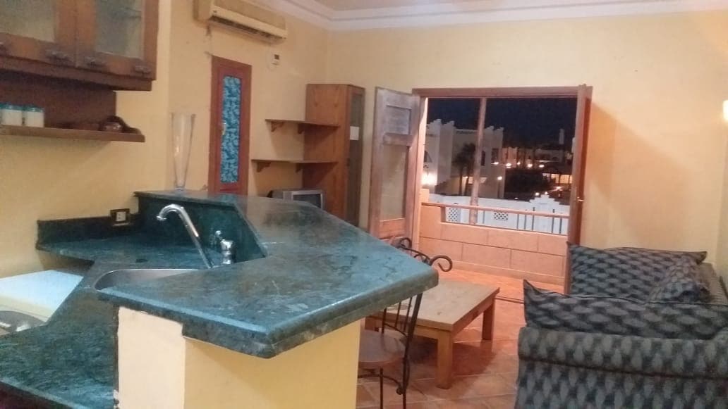 The flat has been fully renovated, it’s two bedrooms and two bathrooms one of them in the master room, the tenants will be entitle to use the compound beach which is footstep down from the compound, it's known as one of the famous dive site in Sharm Elsheikh, the beach has restaurant which serve breakfast, lunch and dinner, and it has beach bar serving all kind of drinks.