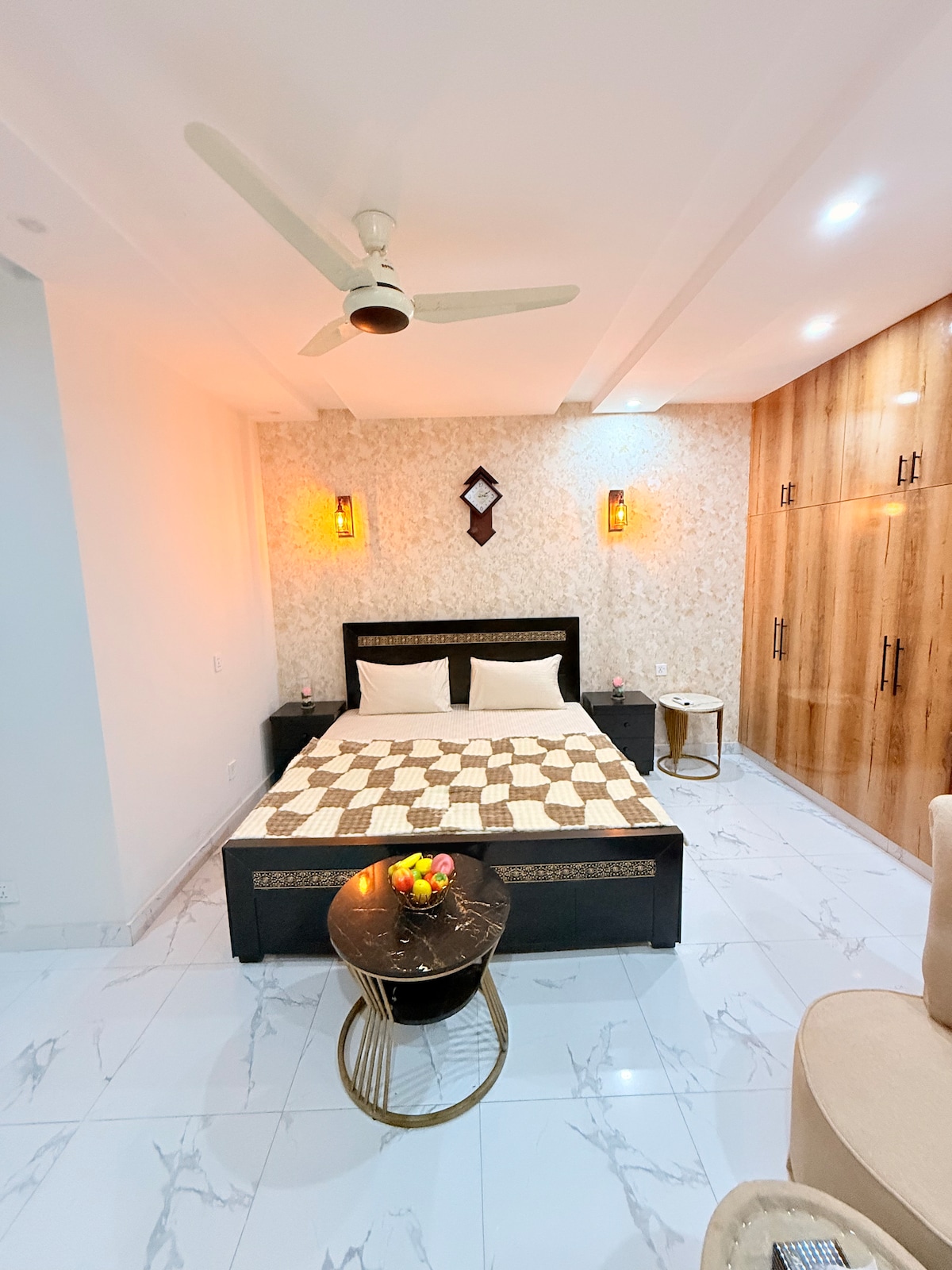 That's Studio apartment 326sq feet, we also have one bed apartments , 2 bed apartment options in Iqbal town, Gulberg and Behria town Also two bedrooms portion( house) in Iqbal town and Wapda town Note : The price mentioned is exclusive of Electricity and for monthly clients only Routine Per Night Rate for Studio is 5000-5500 One bed apartment 6000-6500 Two bedroom Apartment 10-12k Also we don't accommodate unmarried couples