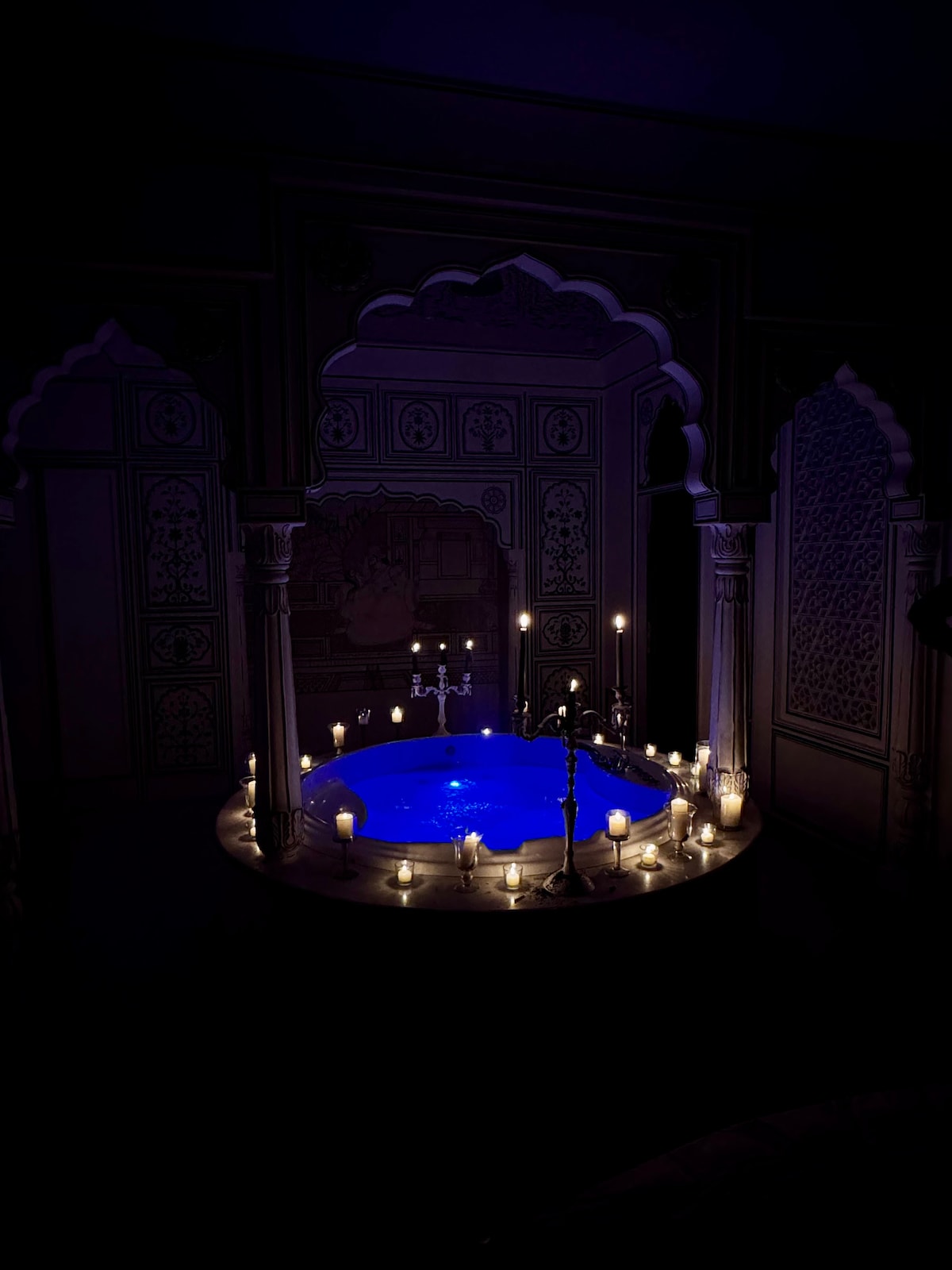 Step into a living sketchbook in the Princess Suite by Lalluji Luxe. Reimagined as a 2D Sheesh Mahal, this monochrome suite features hand-painted walls and authentic Tikari mirror work. Relax in a hot tub beneath a “Sheesh Mahal” ceiling as reality dissolves. Savor yourself with authentic home-cooked meals and relax on the artistic balcony. At Lalluji Luxe, you don’t just stay—you become part of the masterpiece.
