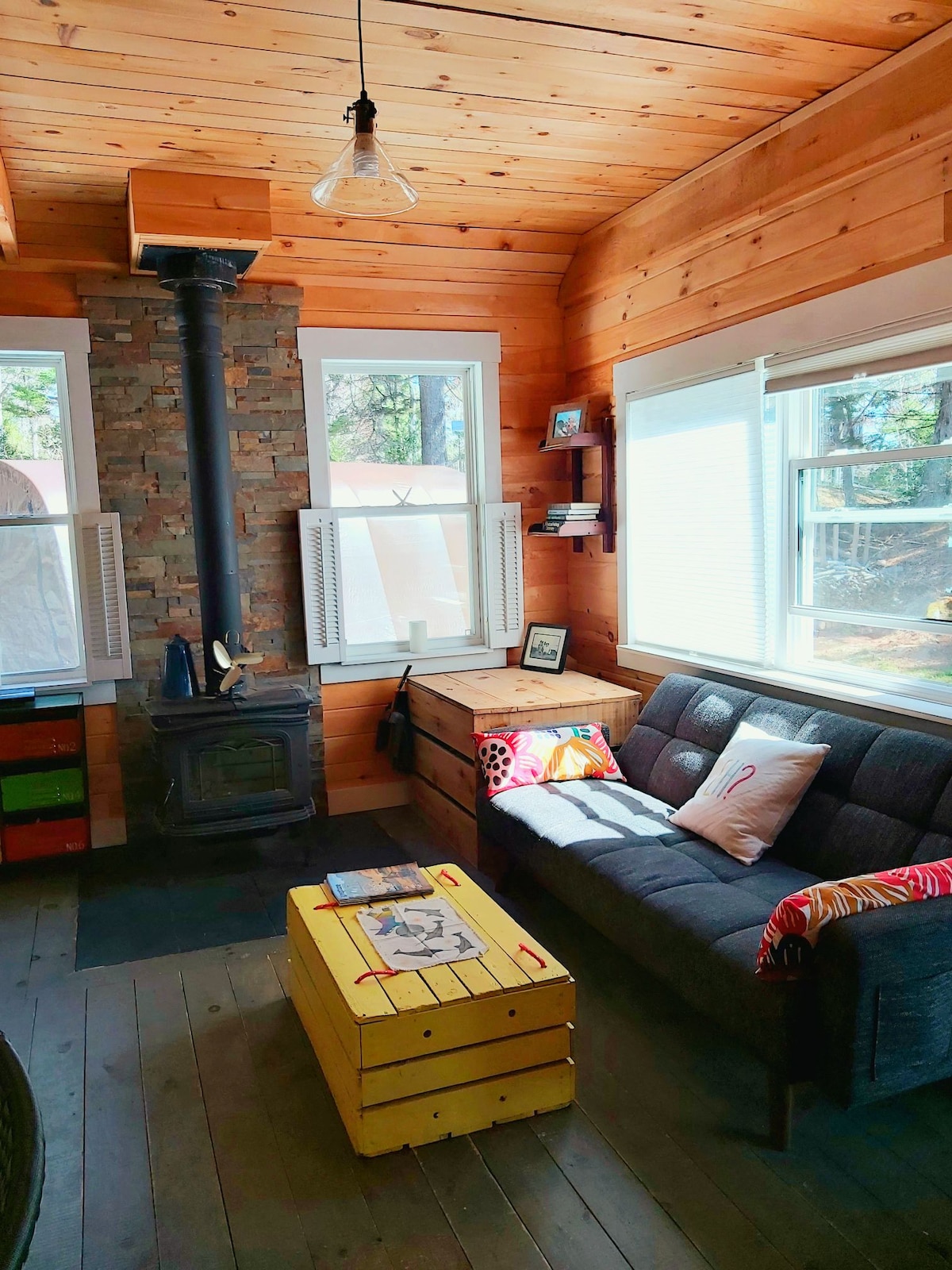 We are currently building on/renovating to add a larger living room, fireplace and an additional bedroom. I have the dates starting on September open for bookings. No cleaning fee!! The location says Tusket, it’s Quinan on Lake Kegeshook. The cottage is a farmhouse style with all white walls. Large windows and high ceilings allowing for great light.. The cottage is remote, quiet and perfect for relaxing. The cottage is a 20 mins drive in from the Tusket exit and 35 minutes to Yarmouth
