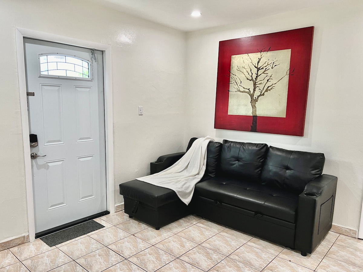 FREE PARKING at your own Driveway in a very SAFE & QUIET neighborhood @ Heart of Miami. TOTALLY PRIVATE with separate/private entrance, within walking distance of Little Havana, just mins to Downtown, Brickell, Key Biscayne, I-95, Coconut Grove, Coral Gables. High Speed WIFI, microwave, fridge, air-fryer, toaster oven, electric hot plate w/ pots& pans, coffee/espresso maker, etc and all the amenities you may need. Full size bed has a trundle with a twin size bed.