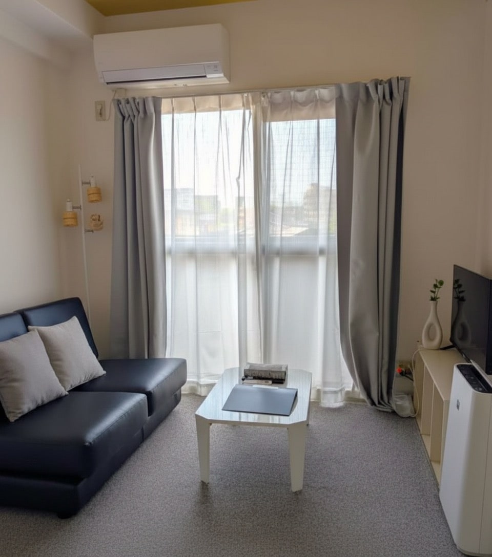Living room with a balcony where you can spend time with family and friends, features a full kitchen. Located between Kitakyushu Airport & tourist spots, it's perfect for a long stay as a base for your Kitakyushu trip. ・Kitakyushu Airport 20 mins by car ・Kokura Station 20 mins by car ・Moji Station 25 mins by car ・Free parking available for one car * Since it's located along a major road, you may hear car noise. If you are sensitive to noise when sleeping, please consider this before booking.