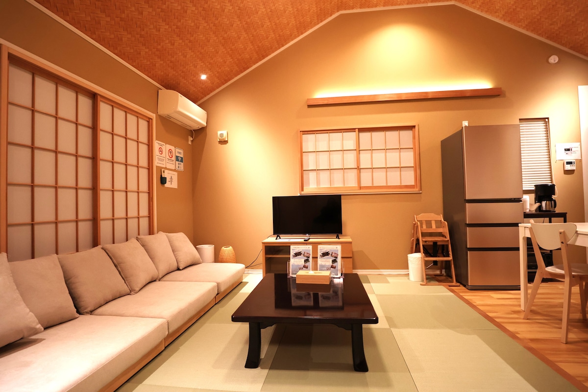 『日本庭園に包まれた心ほどける貸切の宿。』 自然に溶け込む日本庭園…一面に広がる苔庭と、季節によって表情を変える木々。静けさと美しさに満ちた圧巻の日本庭園をお楽しみください。 ・庭師渾身の日本庭園 苔庭が一面を包み込む唯一無二の空間。竹と木のゲートをくぐれば一瞬で別世界に誘う瞬間をぜひ堪能ください。 ・広々サウナ完備 最大6名利用可能。家族や仲間と、ととのう」贅沢な時間を。時間無制限・追加料金なし ・BBQ可能な七輪完備 和モダンに調和する七輪で旬の素材を堪能。パラソルで雨でも気軽に。備品無料貸出 ・焚き火スペース完備 炎を囲んで仲間や家族と語り合う。パチパチと燃える音に耳をすませ、贅沢なひと時をご堪能ください。焚き火台無料貸出 ・こだわりの土間スペース モルタル土間を素足でペタペタ。五感に響く非日常体験をお楽しみください。 ・木の香りに包まれる室内 無垢の木材を贅沢に使用。木の香りとぬくもりに満ちた空間を。 ・本物の完全プライベート空間 1組限定貸切ヴィラ。チェックインからチェックアウトまで非対面式で遠慮や気遣いとは無縁の完全プライベート空間をご堪能いただけます。