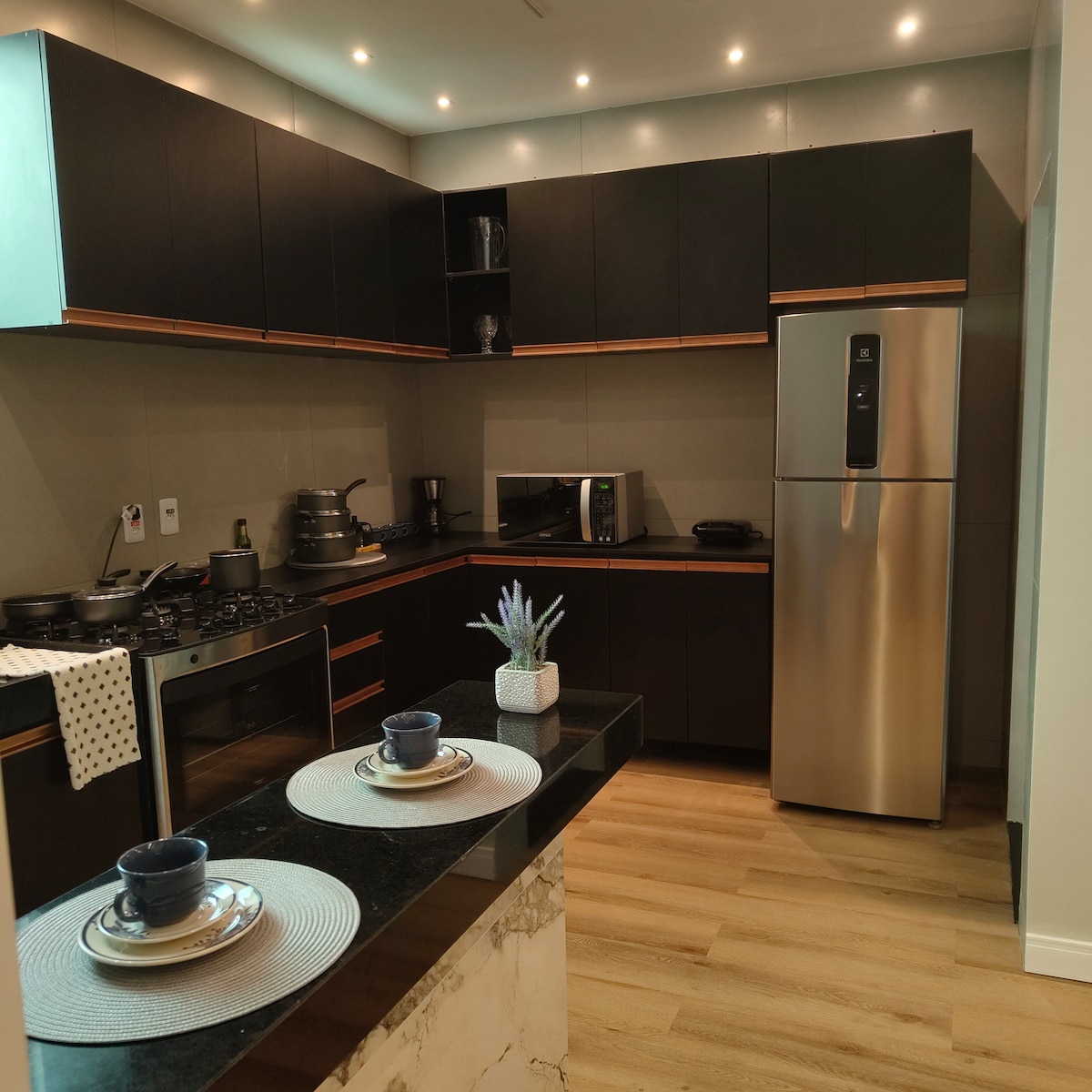 São 3 suítes climatizadas aconchegantes com churrasqueira e jacuzzi privativa perfeitas para acomodar famílias com privacidade e comodidade. A cozinha é moderna e funcional, com uma ilha central que integra o ambiente. Além disso, o apartamento está localizado em um condomínio completo, com piscina, academia e mercado interno, oferecendo praticidade e lazer sem precisar sair do local. É o espaço ideal para quem valoriza conforto, praticidade e uma experiência exclusiva em cada detalhe.