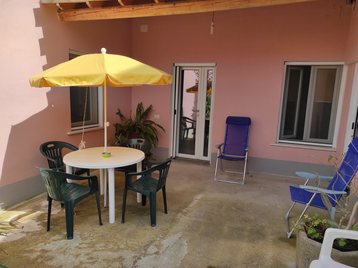 Bilocale composto da : Ingresso soggiorno con un divano letto matrimoniale , un comodo tavolo con 4 sedie , una cucina moderna con piano induzione ,Bollitore ,Macchinetta del caffè , Microonde,Toastapane,Frigorifero e un Freezer. Camera da letto con un letto Matrimoniale alla francese e armadio con ante scorrevoli. Nel bagno è presente una doccia , sanitari sospesi, un Phon e una Lavasciuga. Un patio con giardino dove poter mangiare. In tutta la casa sono presenti le Zanzariere