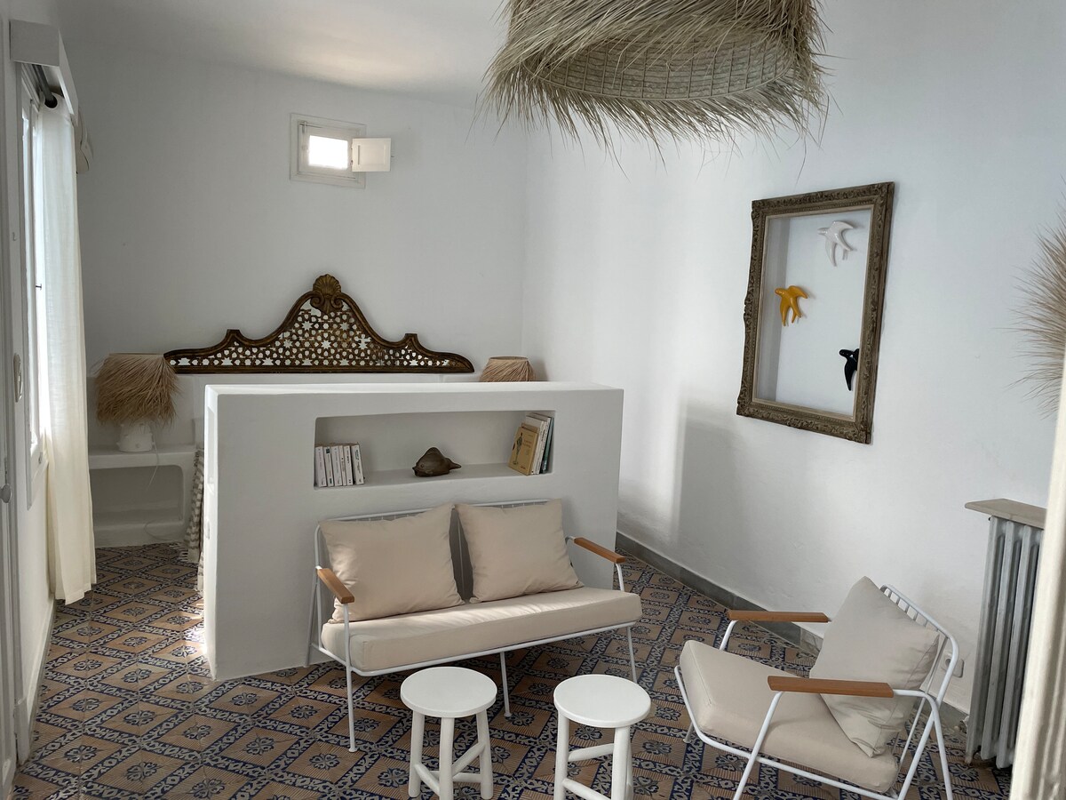 In the heart of Sidi Bousaid, a typical, peaceful and comfortable apartment, located 5 minutes' walk to the train station that connects Sidi Bou Said, La Marsa, Carthage and La Medina. all the famous places in Sidi Bousaid, museums, restaurants, Café des Nattes, Café des Délices... are within walking distance. Richly equipped and with a typical Tunisian decoration embellished with traditional and authentic items. Also has a common outdoor area for a peaceful coffee or barbecue...