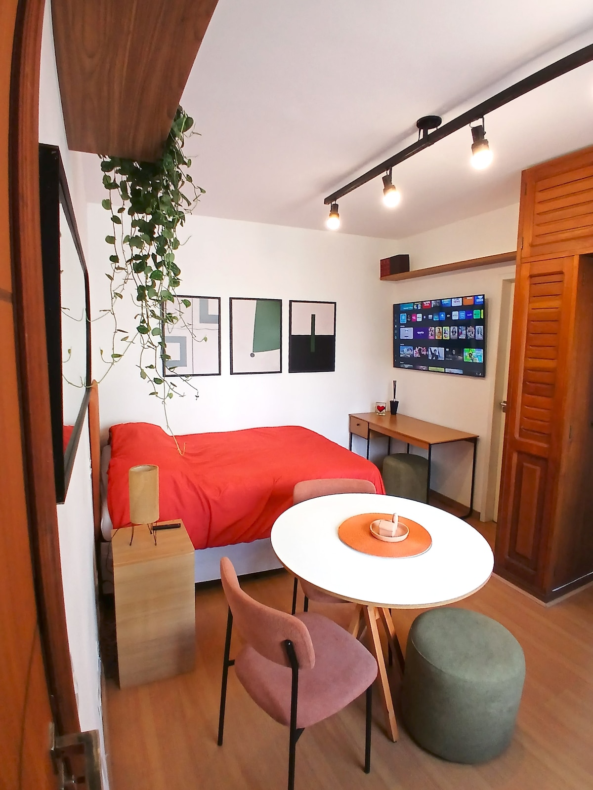 The apartment unites classic and modern, Impeccable location, close to everything! Tourist spots, SUP, Restaurants etc. being able to do everything on foot! Room with 32 cable TV, double bed, wardrobes, etc. Living room with TV50 inches 4K SMART cable (80 channels) HBO MAX. KT: Stove, Refrigerator, Blender,sandwich maker, Water filter. The cleanliness is impeccable, being another differential for those who stay. Viable for home office with 2 Wi-FI. Easy Checkin and Checkout. Accepts small pets.