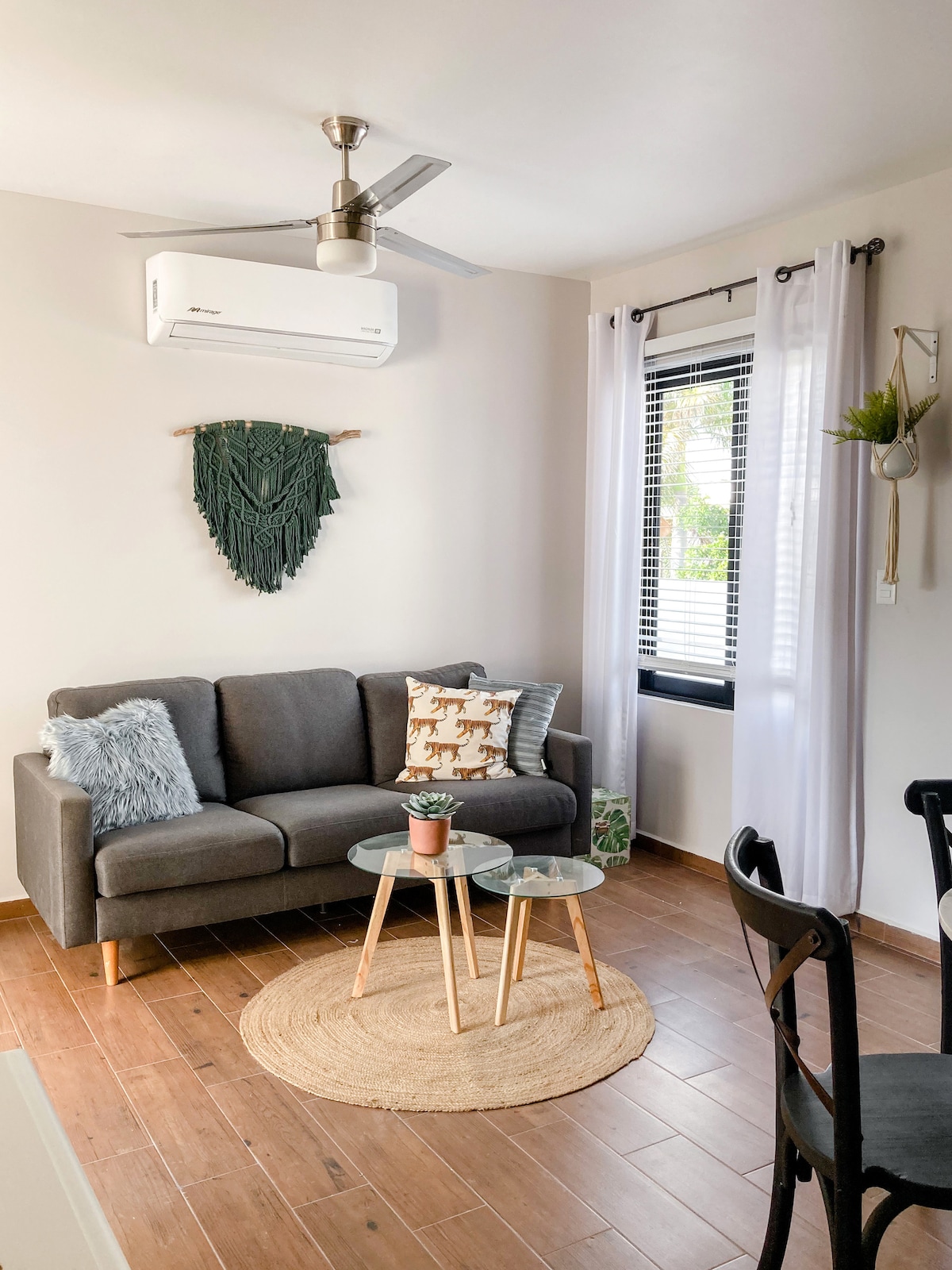 One bedroom apartment, recently renovated with a very comfortable King size bed. The living space has a 55 inch flat screen, a kitchen and refrigerator. Our apartments are spacious, comfortably furnished with large windows. Stay cool with A/C and wind-down in our luuna mattresses. Each apartment is equipped with its own internet access point for good and speedy connection.