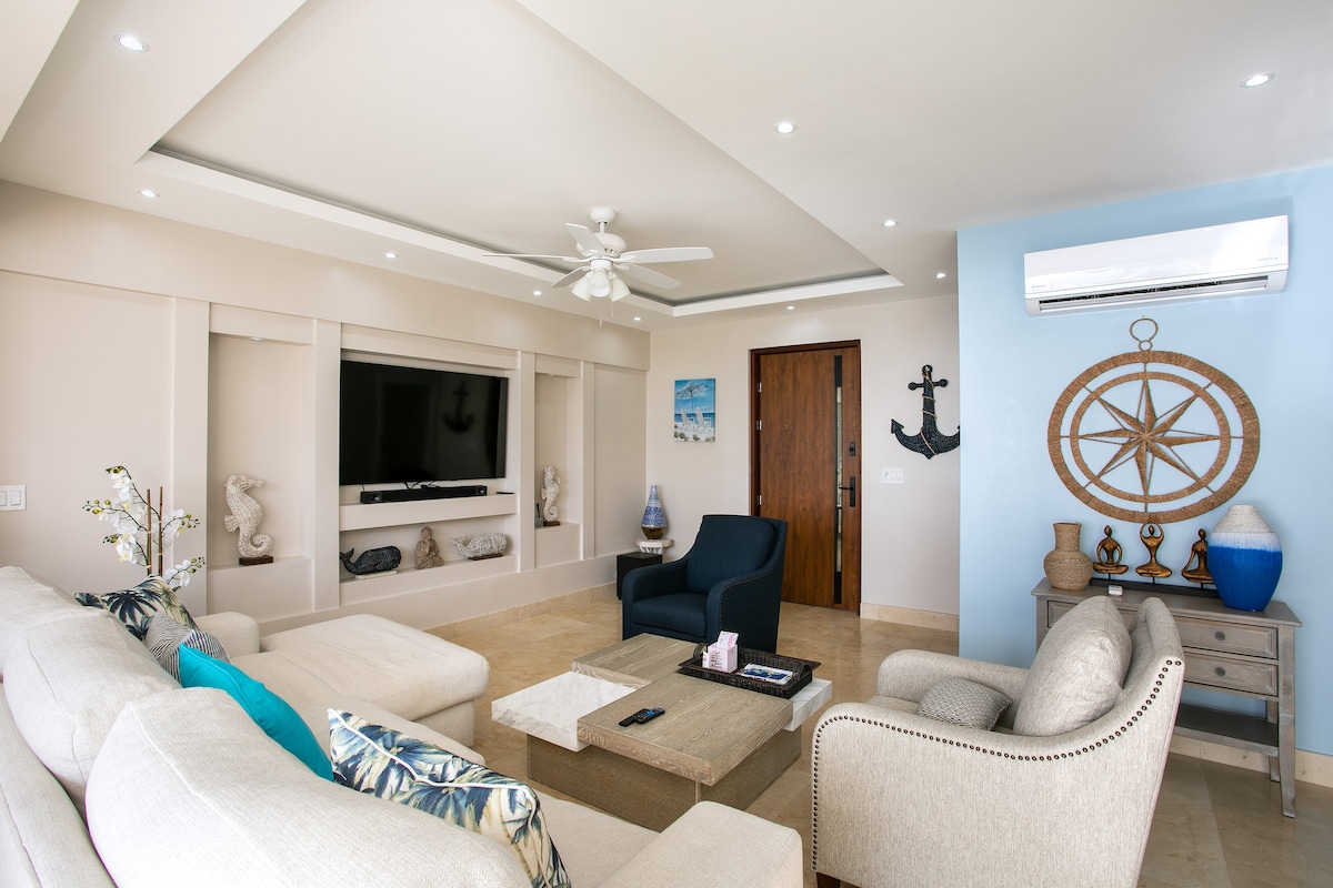 Infinite Blue is an elegant 3-bedroom, comfortable villa with the perfect relaxing atmosphere. The kitchen is fully equipped, and all social areas are comfortable spaces, with a nice design and excellent ocean views. The terrace area has a spacious dining room (area), Inf. pool, outside BBQ, outside shower, and a jacuzzi 36 C degrees depending on the weather, from 6pm until 12 am. For couples or families. The community location is great and safe! It is close to the main sites of interest.