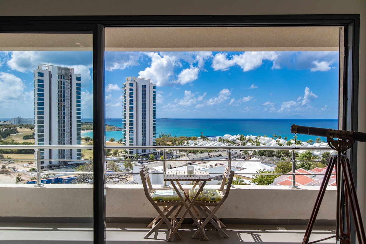 Welcome to your Soualiga getaway! This bright, beachy studio offers stunning ocean and runway views, perfect for plane spotting or relaxing. Enjoy cozy furnishings, coastal décor, and all the comforts of home. Amenities include a pool with BBQs, fitness center, laundry room, and lounge. Just minutes from beaches, restaurants, and shops, it’s the perfect blend of comfort, convenience, and tropical charm.