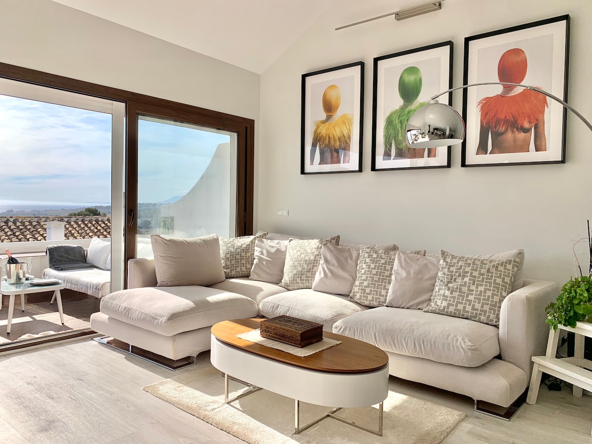 This new townhouse with panoramic seaviews, is the perfect coastal getaway. Enjoy the sunrise & sunset on the rooftop terrace with stunning views of the sea & mountains. A few minutes walk to the beach, shops, bars & restaurants & supermarket - offers convenience & relaxation. Enjoy stunning views from 3 private terraces, a pool, gym, spa, and social area - ideal for unwinding or entertaining. Whether you’re here to relax, explore or stay active, we have everything you need for a memorable stay!