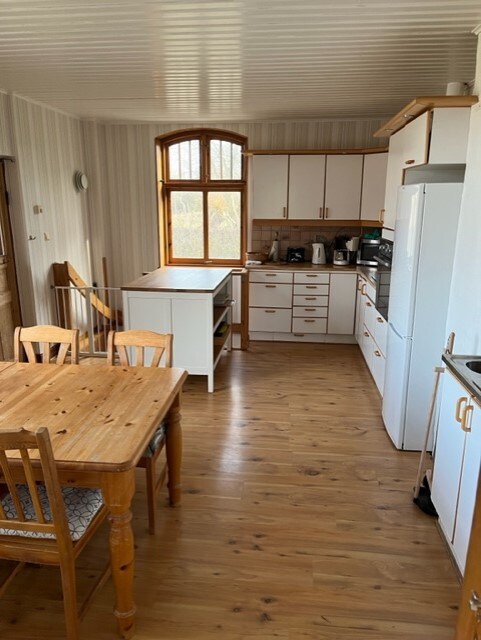 With a scenic location just outside Skäret is this peaceful accommodation. Bordering on wonderful nature and a path to Skäret's beach environment with a jetty and about a five-minute walk to the golf course St. Arild's golf course (with restaurant). The house dates back to 1911 and has a living area of about 200 sq. meters. Beautiful veranda, generous ceiling height and arched windows are some details that the house offers. The house includes a large garden with a patio with a pergola. The cleaning fee includes sheets/towels for all guests.