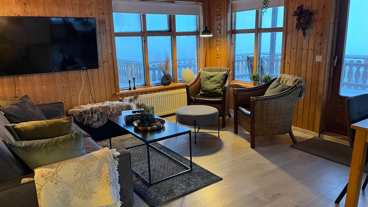 Perfect for couples! Private cabins (29fm3) by lake Apavatn. Great view of mountains as overlooking the lake. Queen bed (160cm), kitchenette with basic kitchen utilities, Nespresso machine, kettle, toaster, induction plate and a microwave. Veranda with seating area and a gas barbecue. Smart flat screen TV with Netflix. Everything is private, nature all around and space for exploring and hiking.