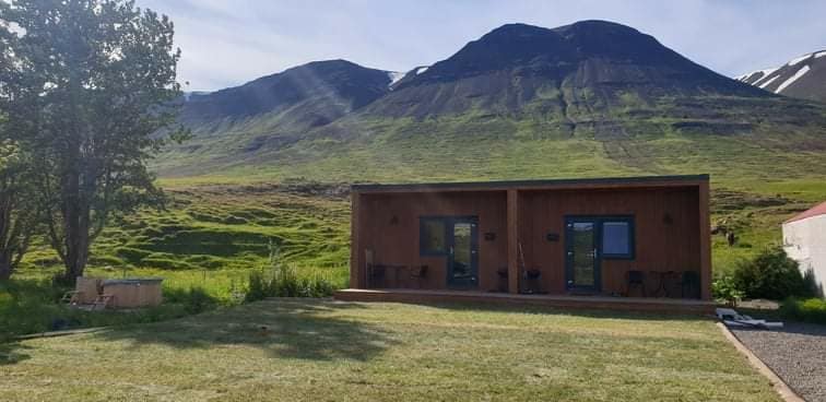 This modern and privately owned 106 m2 luxury cottage is located right above Akureyri and has gorgeous views over town and the surrounding nature. The house comes with a fully equipped kitchen, flatscreen TV and Wifi, entertainment system/board games and a cozy indoor hot tub to relax in after a long day.