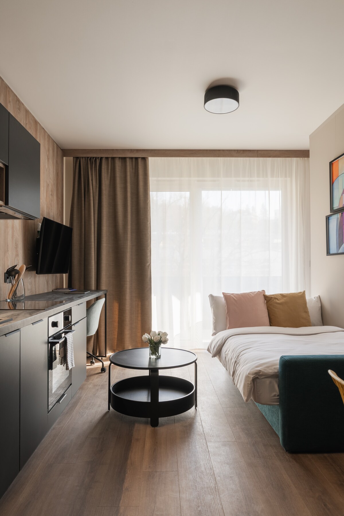 Travelling professional? Find a long-term stay with high-speed wifi and dedicated working spaces.