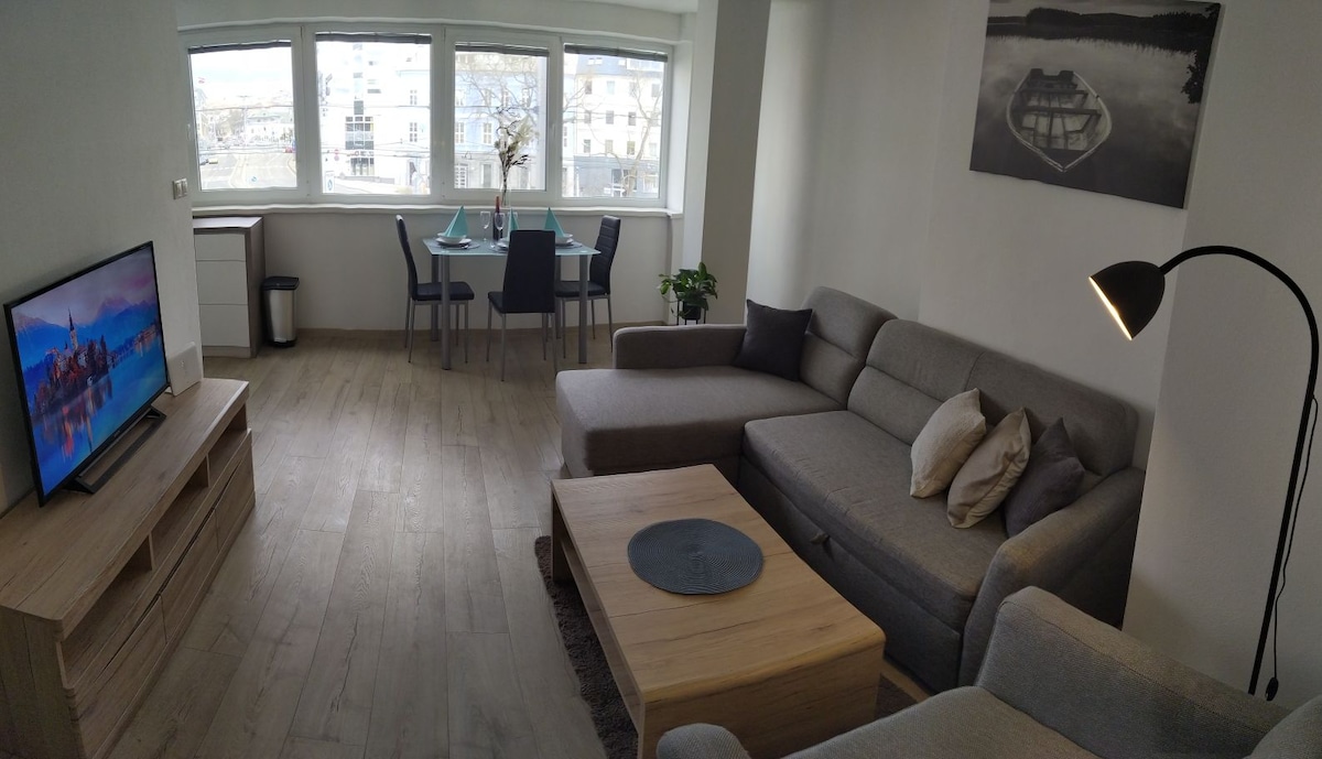 Apartment in Panorama City is located in the center of Bratislava with gorgeous panoramic view and many more! If you love shopping, clubs, walking along „city nature“ by sunset, you are at the right address! Next to the Danube River there is a huge shopping mall Eurovea with cinemas, restaurants, shops situated next to Slovak National Theatre. Everything takes 5 minutes by walk.