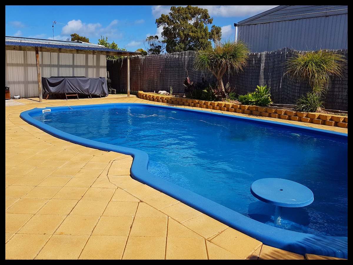 Relax with the whole family at this peaceful place to stay. Close to the beach. Sit back with family and friends with a glass in hand enjoying the cooler summer evenings. Enjoying a private inground pool, you can create memories for years to come. With a large BBQ and spacious kitchen, feeding the hungry hoards will not be a hassle. Family-friendly property. This property sleeps up to 9 All bedrooms have ceiling fans There is plenty of Parking with room for a Boat No Pets please
