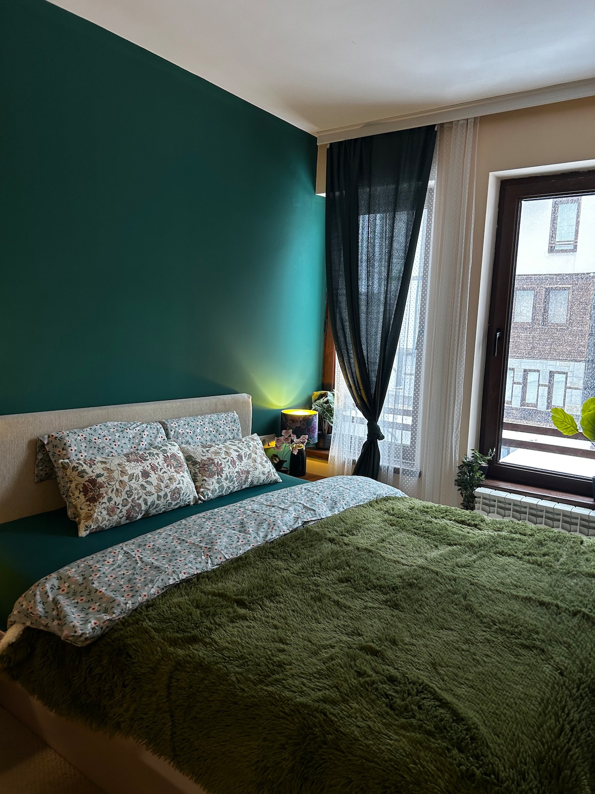 Thanks to its central location, you and your family will be close to everything around. Playground, pedestrian area, shops, pastry shops, restaurants with delicious food. The view from the windows reveals the beauty of the Rhodope Mountains and the hospitality of the town of Smolyan. The apartment is suitable for both a family vacation and a business trip. It has 2 separate bedrooms, a workplace, wi-fi . An extremely communicative location just meters from the Old Center of Smolyan.