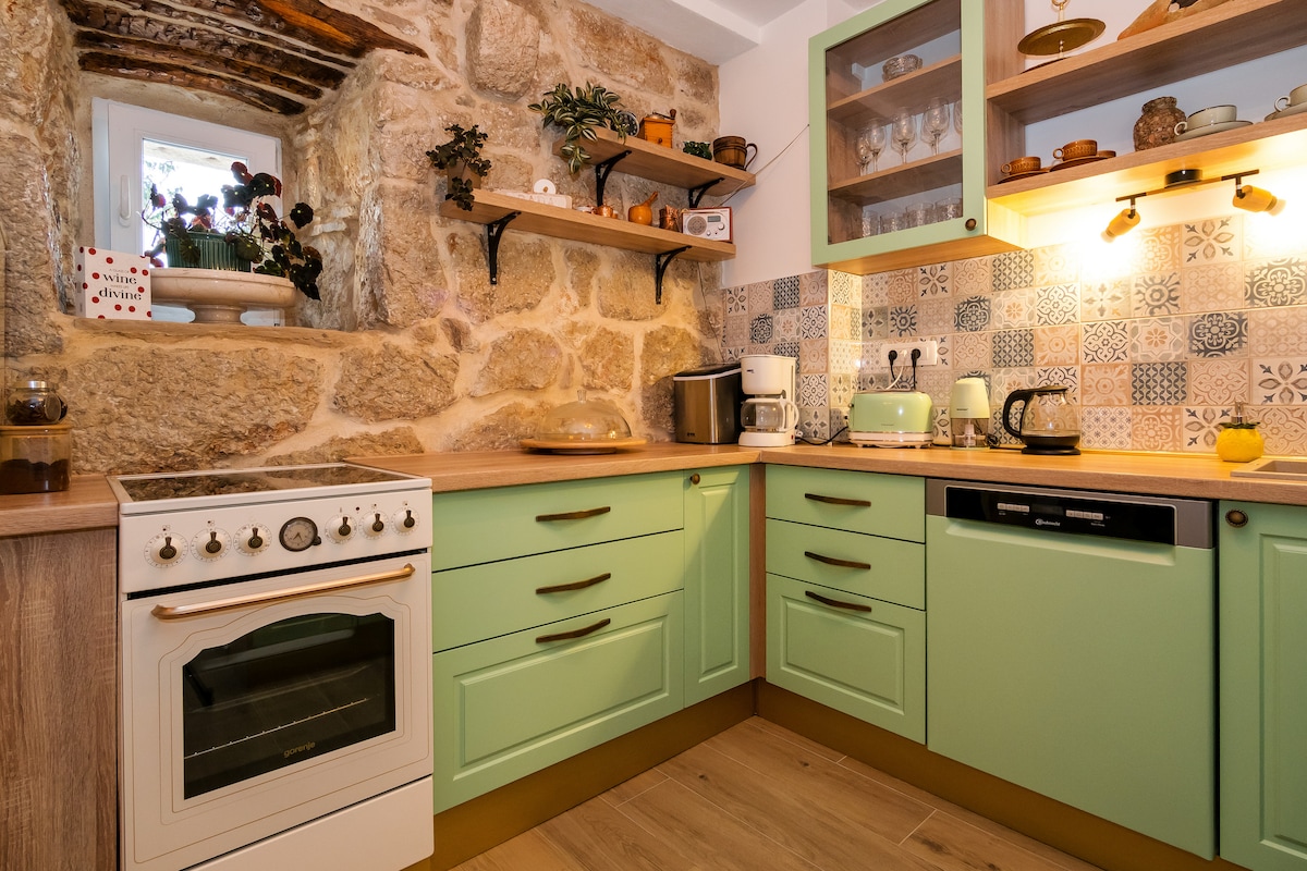 NEW! HOT TUB This beautiful newly renovated Villa Milena will provide you with all desired amenities for your perfect vacation. Modernly equipped, but with a presence of old traditional Dalmatian spirit is the winning formula that will ensure your vocation will be one to remember. The villa is located in a peaceful authentic Dalmatian village far away from everyday stress but close enough to all urban and natural places you should visit during your holidays in Croatia.