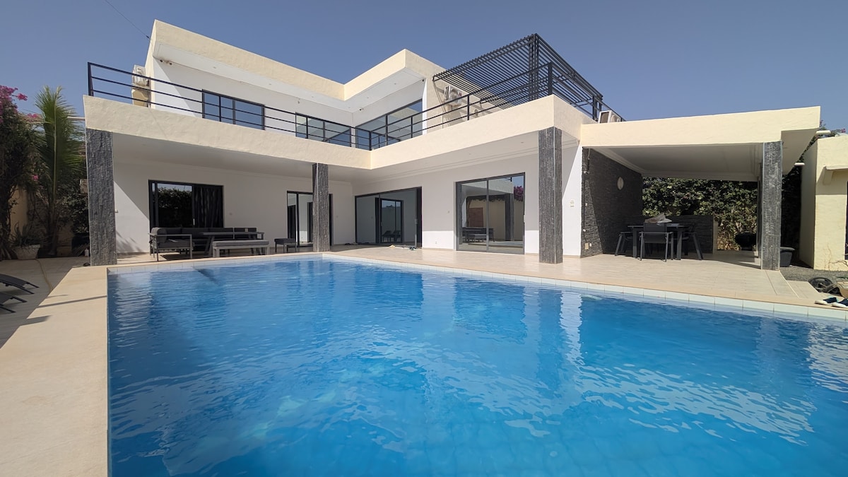 On the most beautiful beach of the small coast of Senegal, Beautiful waterfront villa with infinity pool, large hut, large pergola, four bedrooms, three bathrooms, 1 private toilet and 2 independent, living room. With a breathtaking view of the sea, new bedding, generator, connected TV, Wi-Fi, Bluetooth, Canal+, microwave, world menu, Nespresso, American fridge, high-speed fiber Internet