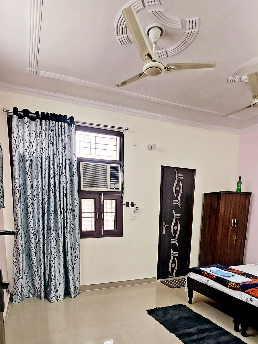 About This Property:- ✨ Master Bedroom – Featuring a Super King-size bed with an ultra-luxury Sleepwell mattress (worth ₹1.3L) for unmatched comfort, a 3-seater plush sofa, split AC, smart ceiling fan, 65-inch Android QLED TV with JBL soundbar, attached washroom, and thoughtfully designed lighting that creates a cozy, welcoming vibe. 🌿 Spacious Garden – Enjoy a 330 sq. ft. private garden with a stylish seating area, perfect for moonlit nights with fancy warm wall lights for a serene ambiance.