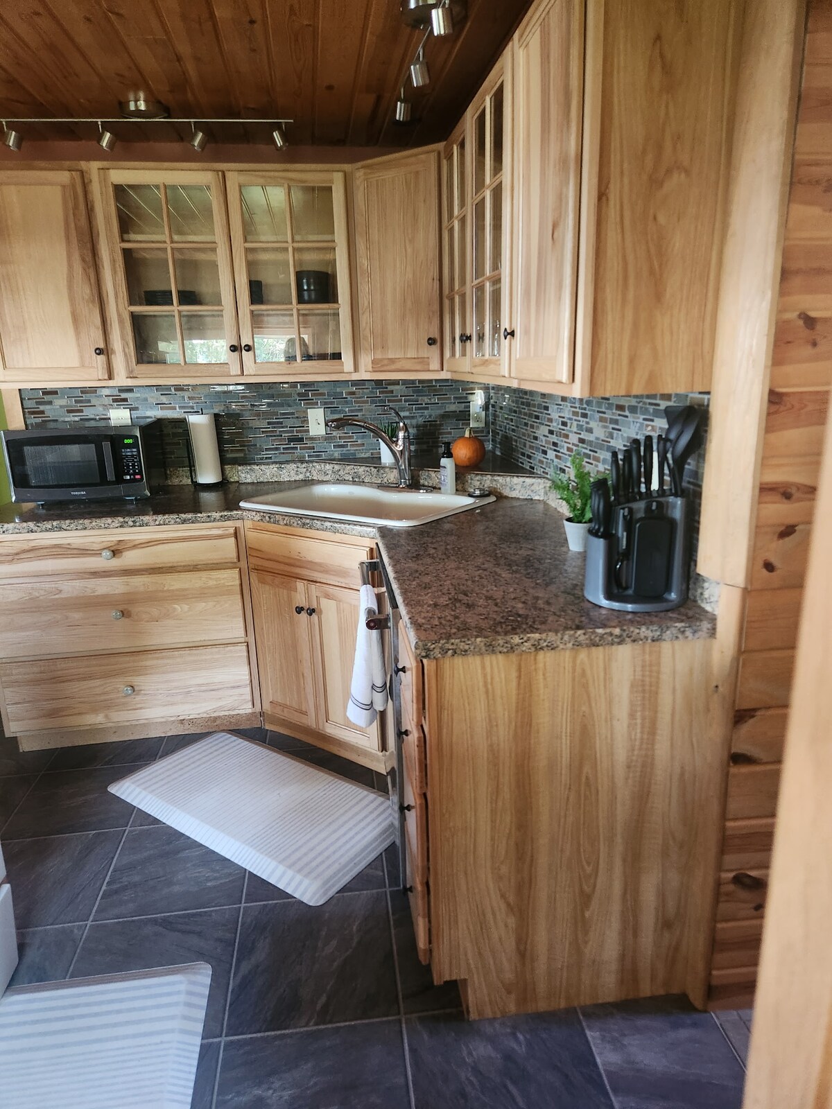 Welcome to Whit’s End on beautiful Drummond Island! We are excited to share our boathouse with you here in the historic Whitney Bay area. Enjoy your morning coffee on the deck listening to Loons and watching nearby freighters navigate Lake Huron. The sunsets over Whitney Bay are truly spectacular. The living space is located on the second floor of our renovated boathouse. We run a small pottery shop on the main level, so you may notice occasional activity during the day.