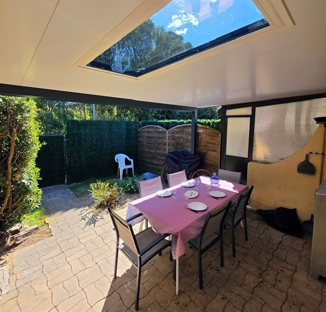 Come and enjoy the calm of this air-conditioned and independent apartment, peaceful in the heart of the old village of Argeles-sur-Mer, and completely refurbished in 2022. Quiet but close to the village center, 2 or 4 people can stay thanks to the sofa bed in the living room, and enjoy the terrace overlooking the river and nature. Access to the beaches is 5 minutes by car, 30 minutes on foot, there are shuttles all year round and electric bikes, more info on daqui-mobilité.fr.