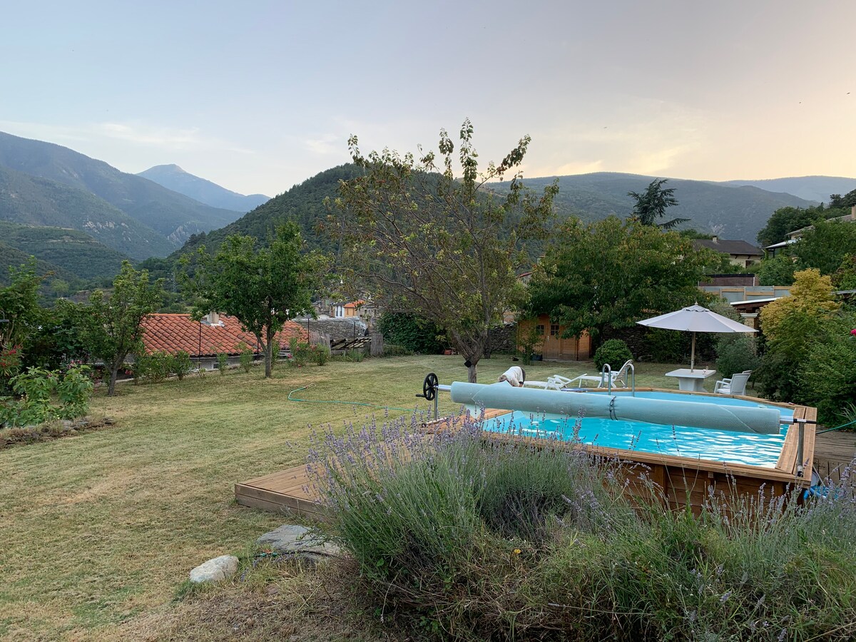 Pyrenees rock house, spectacular views, garden