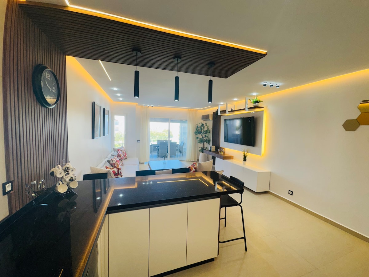 Looking for a peaceful oasis to unwind? Look no further! We have the perfect apartment for you in Assilah, the pearl of the Moroccan coast. This superb location will seduce you at first sight! Our apartment is ideally located in one of the most popular residences in Assilah "Marina Golf", offering stunning views of the golf course and the Atlantic Ocean. Enjoy gentle sea breezes and stunning sunsets from your private balcony.